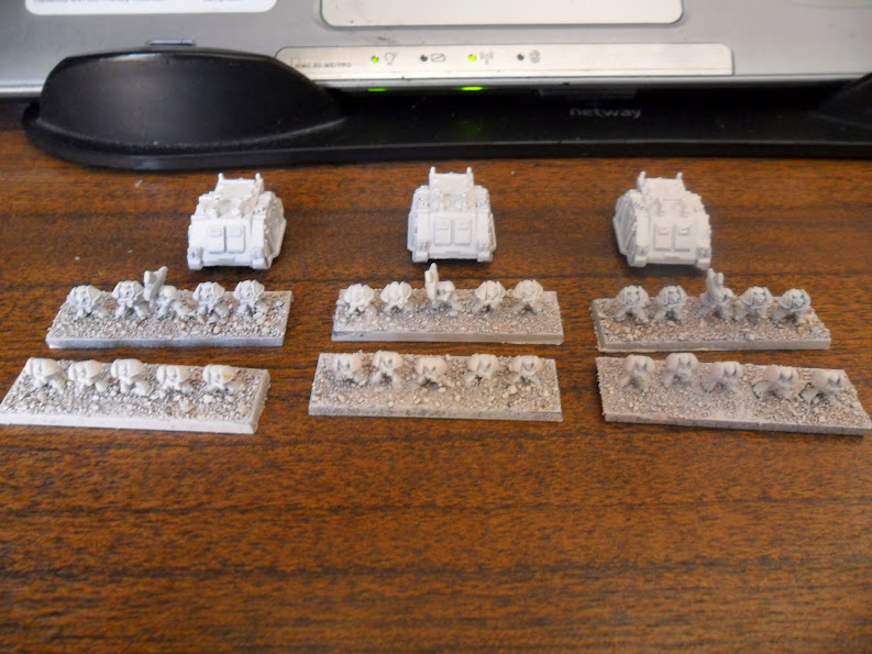 El proceso fue un poco más largo de lo esperado, ya que al ir en peanas individuales pegadas a la más grande, tuve que cortar por la base de los pies con cuidado para no hacer ningún desastre (y aún así alguno he hecho). Acto seguido fueron imprimados para dejar de ser lobos espaciales: