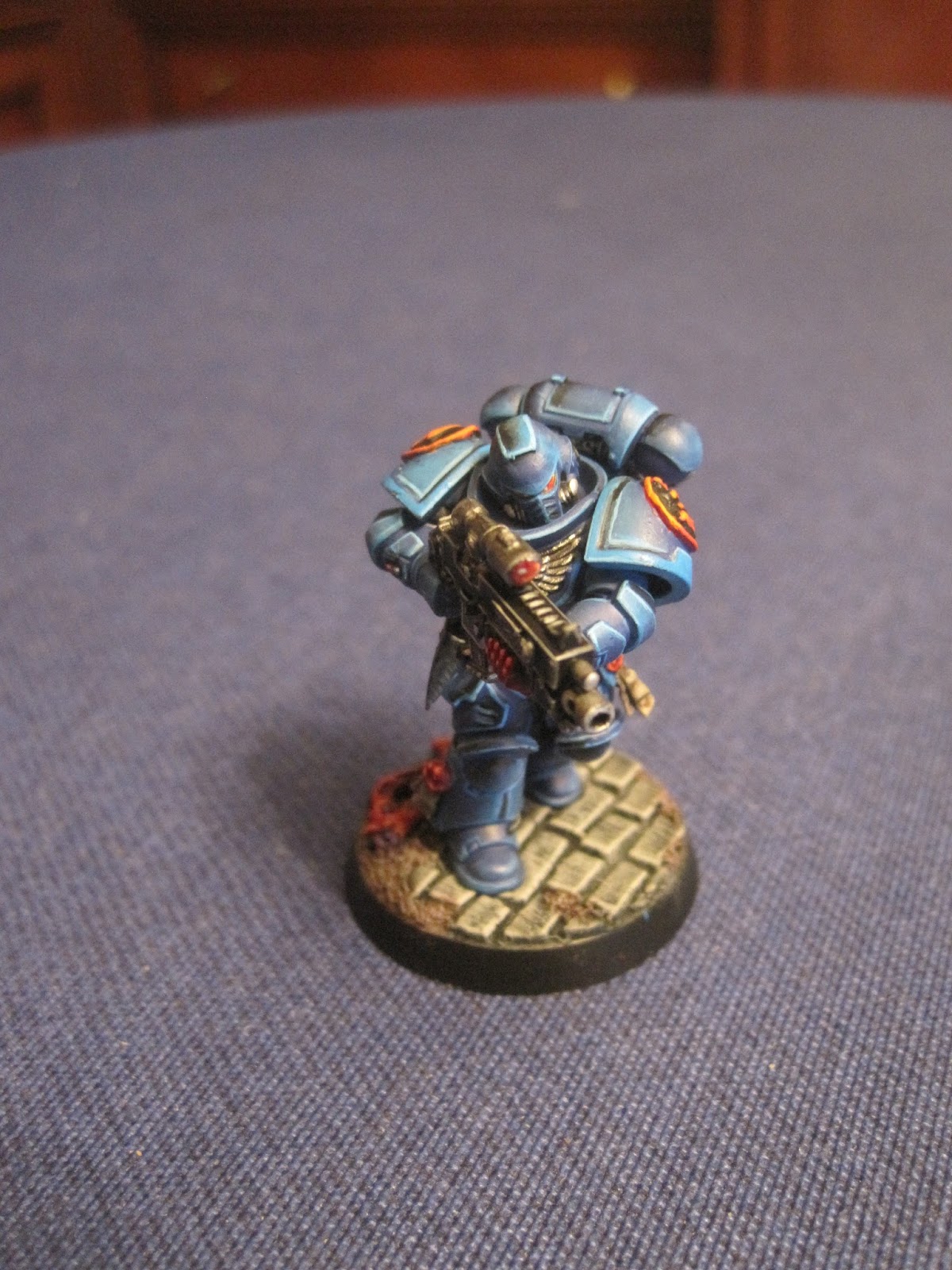 The model has just been modified to add the shoulder pad's simbols and a Tyranid claw on his hip, because the Fists usually wear some of their victim's "trophies".